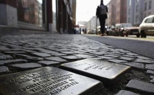 Ursprünglich eine deutsche Initiative, bei der es darum geht, Holocaust-Opfern an relevanten Stellen zu denken, beispielsweise an ihrem Wohnort, wo kleine Messingschilder auf dem Bürgersteig angebracht werden.