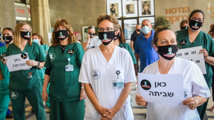 Krankenschwestern und Ärzte standen von Anfang an an vorderster Front in der Coronavirus-Krise, litten jedoch unter Missmanagement der Krankenhäuser und mangelnder staatlicher Unterstützung. (Flash90)
