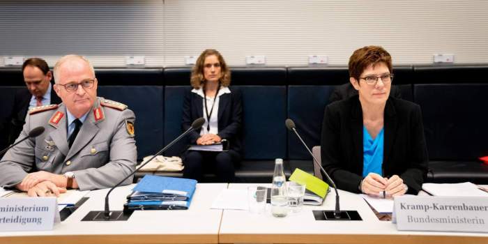 Verteidigungsministerin Annegret Kramp-Karrenbauer (CDU, r) und Eberhard Zorn (vorne, l), Generalinspekteur der Bundeswehr, nehmen an der Sitzung des Verteidigungsausschuss des Bundestages teil. Thema ist Rechtsextremismus in der Elitetruppe KSK. – dpa