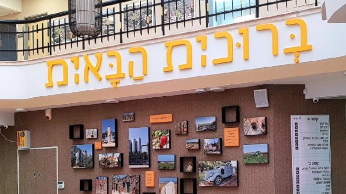 Das neue Schild am Gebäude des Regionalrats von Gezer. Die neuen Endschriften, die die Buchstaben “mem” und “tav” kombinieren, sagen im männlichen Plural korrekt “willkommen” und im weiblichen Singular falsch (“bruchit habait”, Wörter, die überhaupt nichts bedeuten) (Foto: Facebook)
