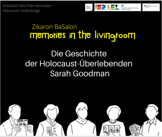 Anlässlich des Internationalen Holocaust-Gedenktags laden wir Sie ein, die Geschichte der Holocaust-Überlebenden Sarah Goodman zu hören im Rahmen der Reihe Zikaron BaSalon (Erinnerung im Wohnzimmer).