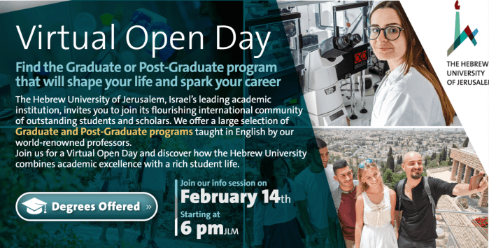 Die Hebräische Universität Jerusalem bietet am 14. Februar einen virtuellen Tag der offenen Tür an.