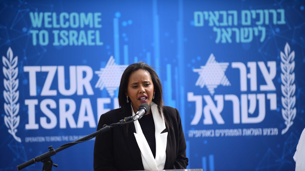 Die Ministerin für Aliyah und Integration Pnina Tamano-Shata, selbst in Äthiopien geboren, begrüsst die Neueinwanderer