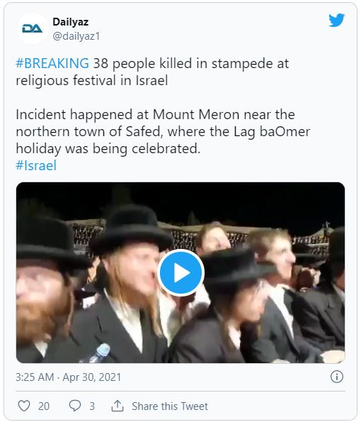 Präsident Reuven Rivlin schrieb bei Twitter, er verfolge die Berichte aus dem Ort Meron und bete für die Genesung der Verletzten. Regierungschef Benjamin Netanjahu äusserte sich erschüttert über das «schlimme Unglück».