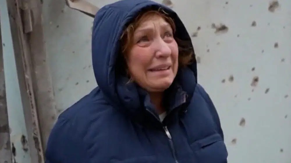 Doch eines Nachts wurde das Haus, in dem Ludmila Goldin lebte, durch eine Bombe beschädigt. Sie sei wegen der fortwährenden Angriffe auf Mariupol bis zur Morgendämmerung in ihrem Haus geblieben. „Als sie mit dem ersten Tageslicht hinausging, um zu untersuchen, was geschehen war, traf sie dort Kameraleute, die sie filmten. Es war Winter, kalt, und sie hatte nicht genügend Essen.“