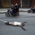 Vor den Augen der palästinensischen Bevölkerung, mitunter Kinder, wurden die Männer auf offener Strasse erschossen. Danach hat man ihnen die Hosen heruntergezogen und einen der Männer an den Beinen an ein Motorrad gebunden. Die Hamasschergen rasten dann jubelnd und schreiend durch die Strassen von Gaza-Stadt.