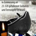 Heute Abend, 24 Stunden bevor Israel seinen 67. Unabhängigkeitstag feiert, beginnt der Gedenktag der Gefallenen. 23.320 Soldaten, Offiziere und Zivilisten sind seit der Staatsgründung Israels 1948 für die Verteidigung des Judenstaates gefallen oder wurden Opfer von Terroranschlägen. Im letzten Jahr mussten dieser Todesliste weitere 116 Israelis hinzugefügt werden…