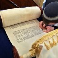 Im Jüdischen Museum Berlin wird „Die Erschaffung der Welt“ erklärt und wie wichtig die Schrift in der jüdischen Kultur ist. In dieser Ausstellung können die Besucher einen Toraschreiber bei der Arbeit beobachten. Reuven Yaacobov sitzt an einem grossen, weissen Schreibpult…