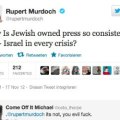 Viele Twitter-User reagierten empört auf Murdochs Kommentar. Einige warfen ihm vor, antisemitische Klischees zu bedienen, andere widersprachen seiner Einschätzungen, dass die Medien antiisraelisch berichteten. Dabei liess der Australier gänzlich offen, auf welche Zeitungen seine Kritik abhob….